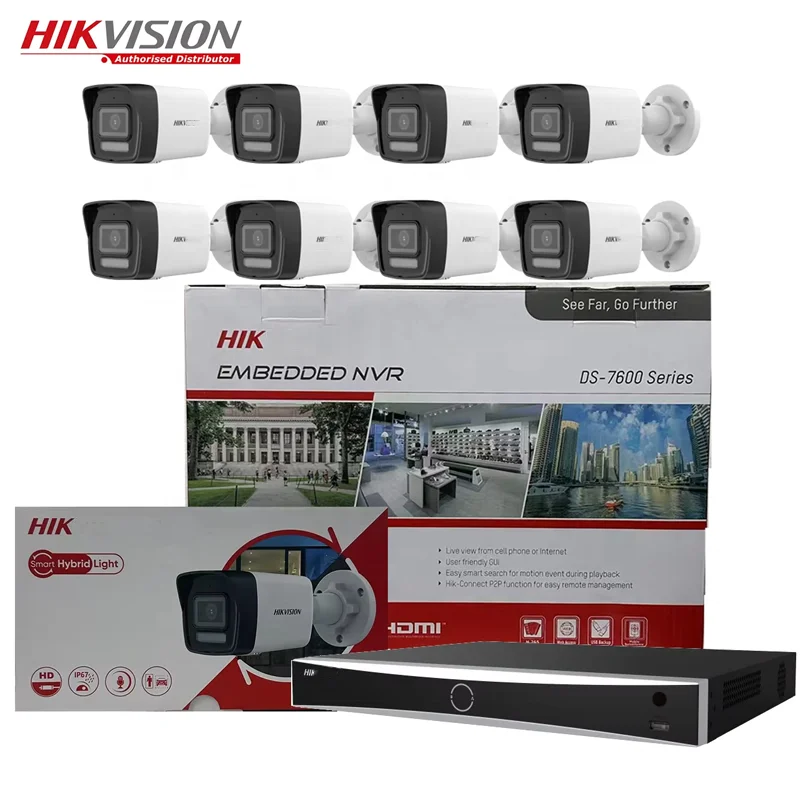 Hikvision 2MP/4MP/8MP Bullet Network Outdoor Camera High Quality Imaging POE Nvr Kit 2 SATA Interface H.265 Surveillance System